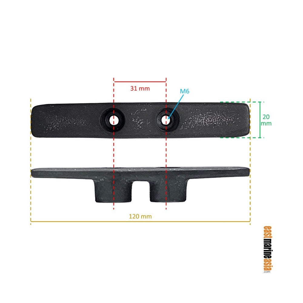 Z Spars 1145 - Aluminium spar cleat or mast cleat is 120mm long x 20mm wide, fastens with 2 x 6 mm fasteners on 31 mm hole centres.  Typically installed in the factory with a special deep-nosed rivet tool but can also be installed with machine screws.