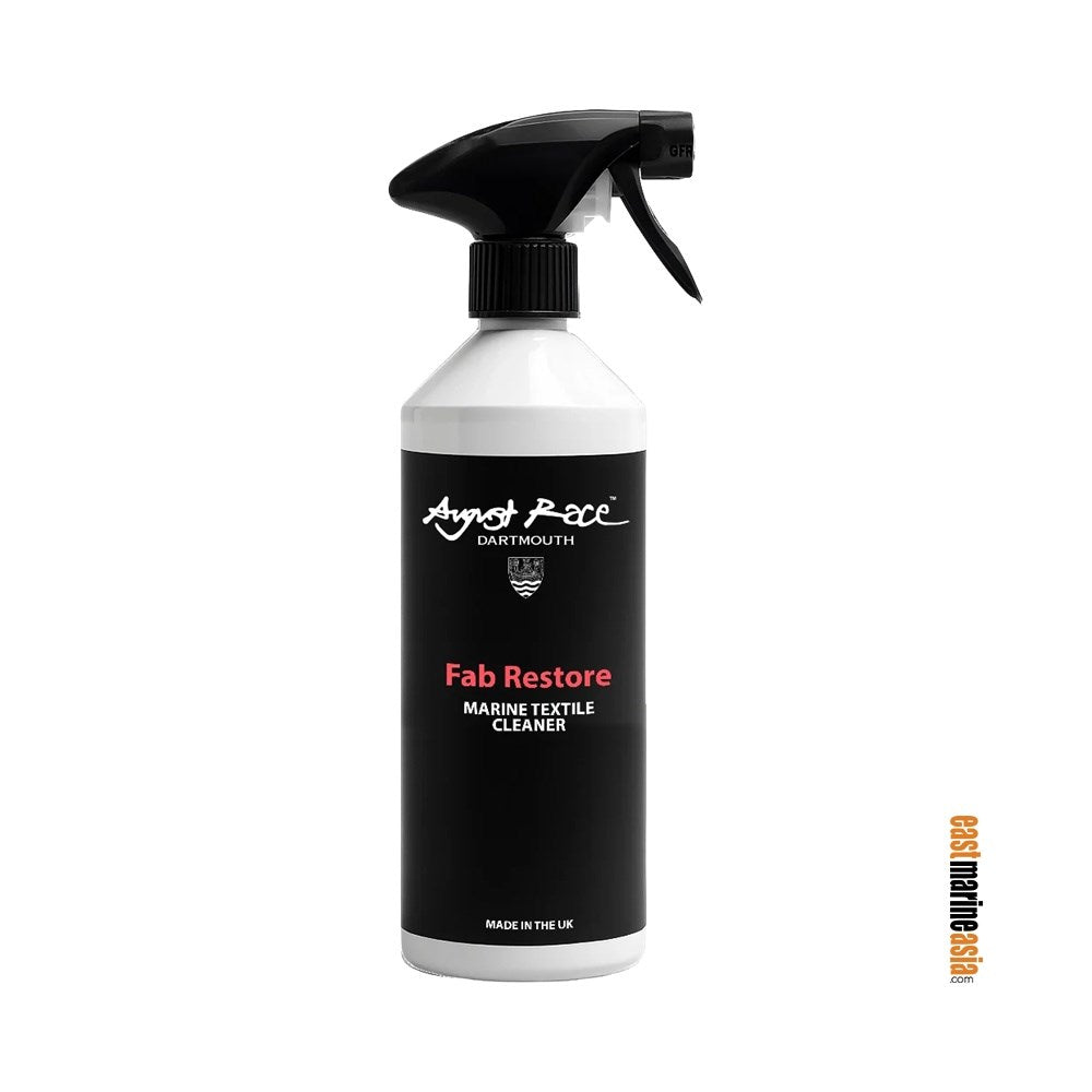 August Race Fab-Restore is a specialist non-toxic cleaning formulation developed for the quick and effective restoration of marine fabric, boat sails and canvas.  Designed with both performance and safety in mind, it provides a powerful cleaning action while remaining gentle on delicate stitching and seams.  Fab-Restore is capable of removing salt deposits, water marks and general dirt build-up, leaving marine fabrics refreshed and revitalised without causing damage.